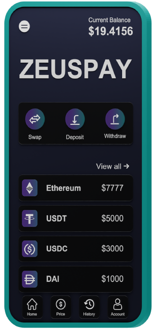 The ZeusPay Wallet is available as a mobile app on iOS and Android, and as a browser extension on Chrome, Firefox, and Microsoft Edge.